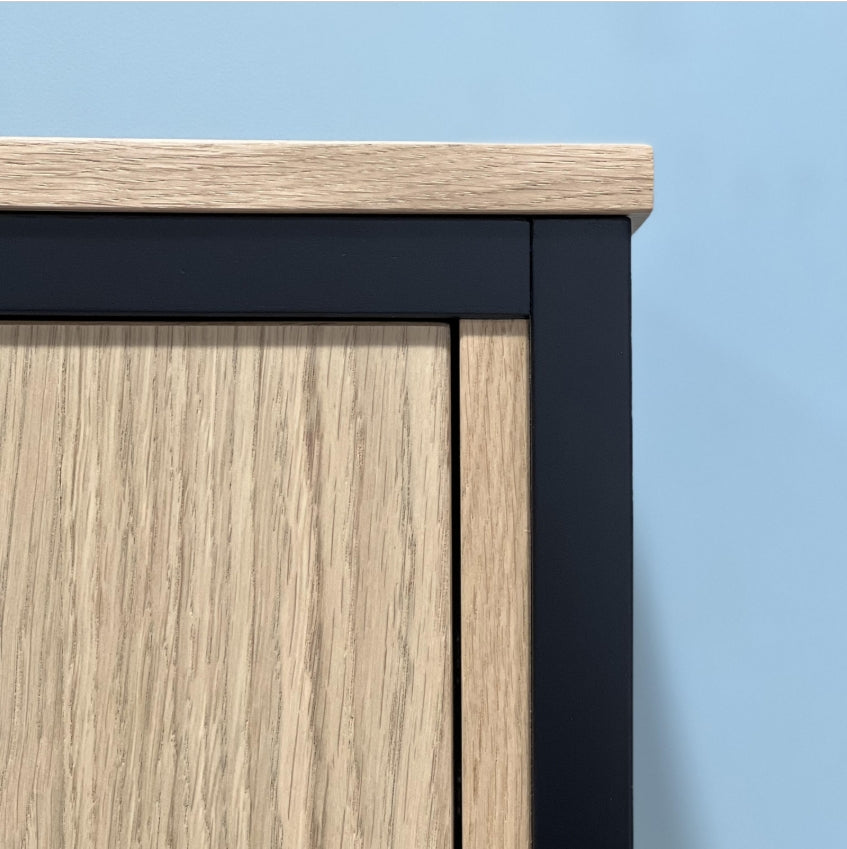 - Placage chêne, apportant une ambiance naturelle et chaleureuse à votre intérieur