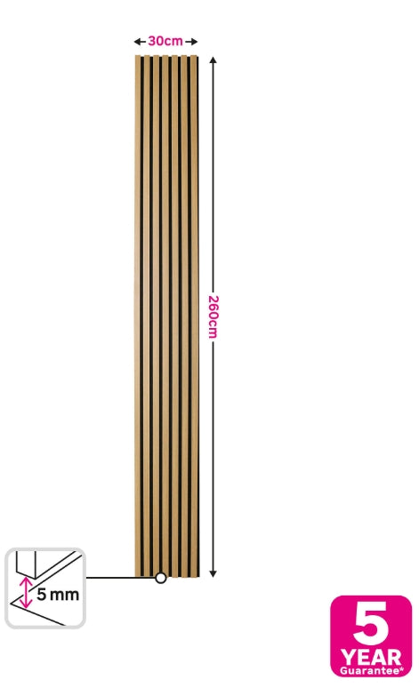 Panneau à tasseaux, finition chêne naturel avec fond noir - VARITENS - Dimensions : 260 x 30 cm
